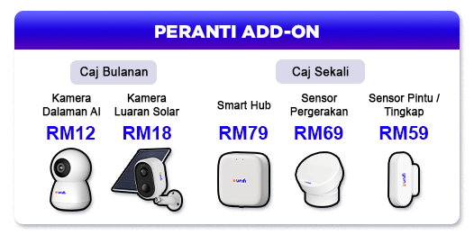 Lindungi keluarga anda dengan TM Unifi Rumah Pintar. Nikmati perlindungan 24/7 melalui kamera AI, sensor pergerakan dan amaran masa nyata — walaupun ketika anda tiada di rumah. Daftar sekarang untuk gaya hidup yang lebih pintar dan selamat.
